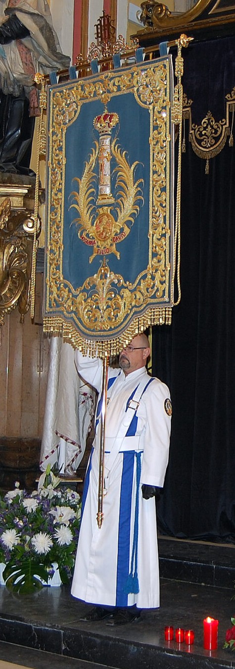 Nuestro querido Hermano Iñaki ha portado durante casi medio siglo el Guión Titular de nuestra Cofradía. Desempeñó un servicio ejemplar dejando una huella profunda en la vida de la Cofradía, siempre dispuesto a ayudar dentro y fuera de nuestras filas, encarnó la fraternidad, la entrega y el respeto que dan sentido a nuestro caminar.